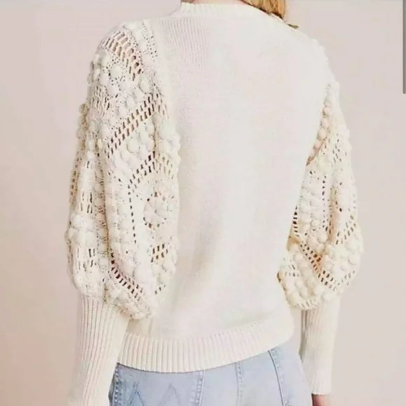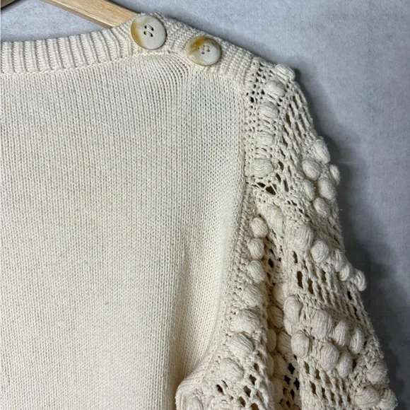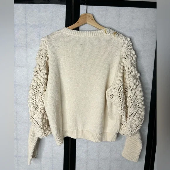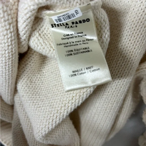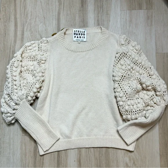 Stella Pardo Fiorella Sweater LGorgeous sweater handmade from baby alpaca in Peru. It has a slim fit and voluminous bishop crochet sleeves. You can Style yours with tailored pants and point-toe boots. Excellent condition- 100% COTTON - Handwash cold, dry flat - Handmade in PeruFits true to size.Measurements: Pit to pit : 20”Shoulder to hem : 20”ApproximatelySKU : BVN10